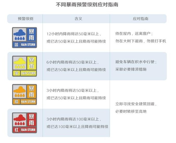 為了應(yīng)對頻繁發(fā)生的城市內(nèi)澇,各地相關(guān)部門正在逐步改進(jìn)排水系統(tǒng),力求將內(nèi)澇消滅在襁褓之中。而在城市防范措施建設(shè)完善的過程中,從自己做起,盡可能避免內(nèi)澇帶來的危險(xiǎn),仍是我們每個(gè)人需要認(rèn)真對待的大事。暴雨預(yù)警是避災(zāi)的“指揮棒”。即使是最低一級的暴雨藍(lán)色預(yù)警,也足以成為停止外出計(jì)劃的理由。那么,你知道不同的預(yù)警級別都代表著什么意思嗎?