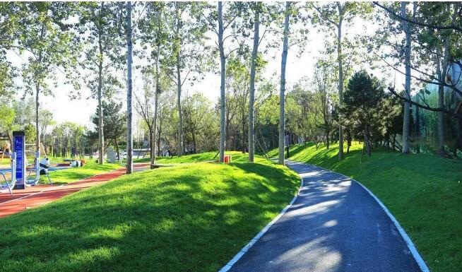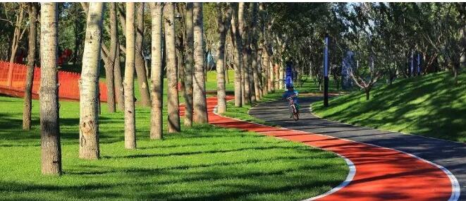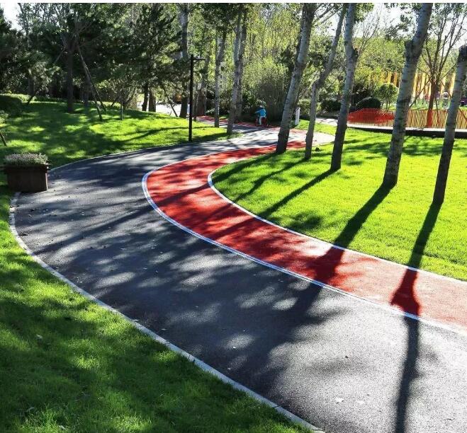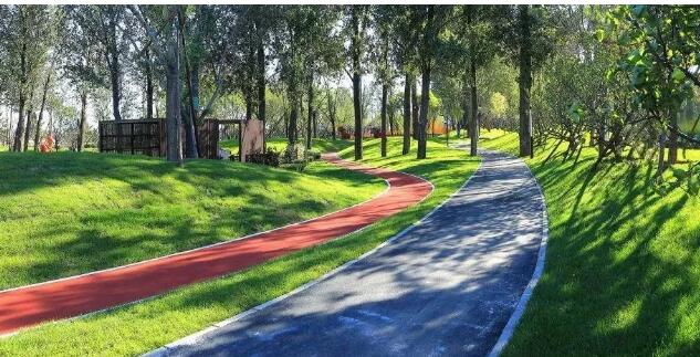 公園中設(shè)計了2.5 m寬的瀝青道路和1.5 m寬的塑膠跑道兩種路線,
