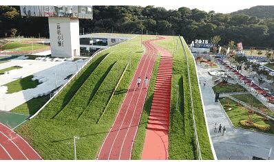 塑造了一個集跑道、廣場、綠化景觀為一體的生態(tài)系統(tǒng)。