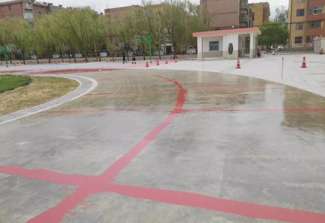 如果是舊水泥基礎,有破損、長青苔、棱痕等現象應用砂磨機打磨場地; 如果是新水泥基礎,則應保養(yǎng)足夠。在場地清洗過程中可用 PH 值試紙檢測,堿性偏高時建議 用 5%左右的稀鹽酸潑灑并洗刷水泥基面,如 PH12-14 為強堿不易施工