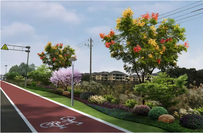 整條景觀大道以中央隔離綠化帶為軸