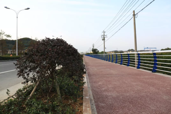 據(jù)工程負(fù)責(zé)人介紹,龍山景觀大道透水地坪采用BSF透水材料建成,擁有15%-25%的孔隙,可達(dá)到31-52升/平米/小時(shí)的透水速度,即使在雨天,路面也不會(huì)積水。景觀大道透水地坪與塑膠跑道的質(zhì)感類似,不管是散步跑步都很舒適,在鍛煉的同時(shí)還能領(lǐng)略路邊農(nóng)田的風(fēng)景。