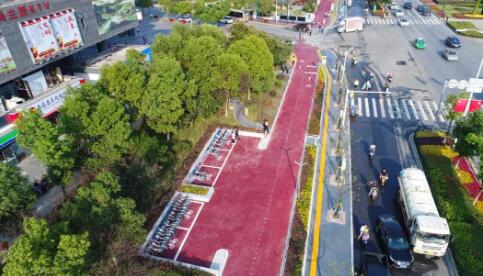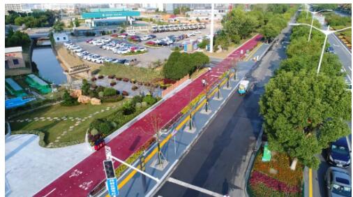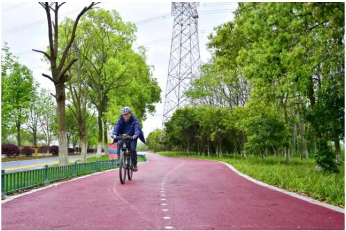 南昌高新區(qū)綠道的建設(shè)遵循以人為本、經(jīng)濟(jì)環(huán)保、因地制宜、疊加組合的設(shè)計理念,路線規(guī)劃串聯(lián)起城區(qū)各類公共空間資源,就近聯(lián)系各級城鄉(xiāng)居民點,將陳舊老化的人行道和非機(jī)動車道升級為彩色透水混凝土鋪裝的“海綿道路”,形成騎行愛好者和徒步愛好者各得其所的騎行道、漫步道和騎行步行綜合道。