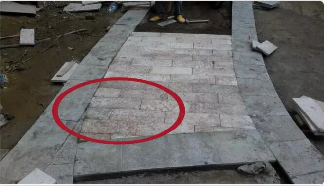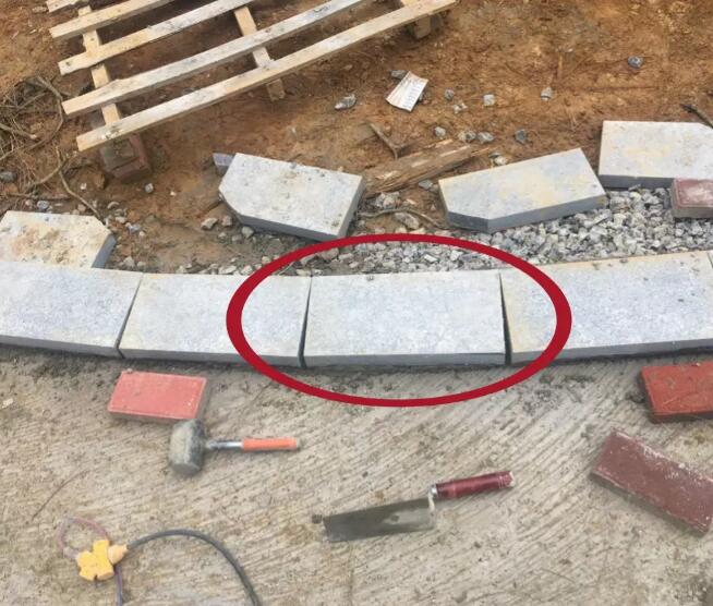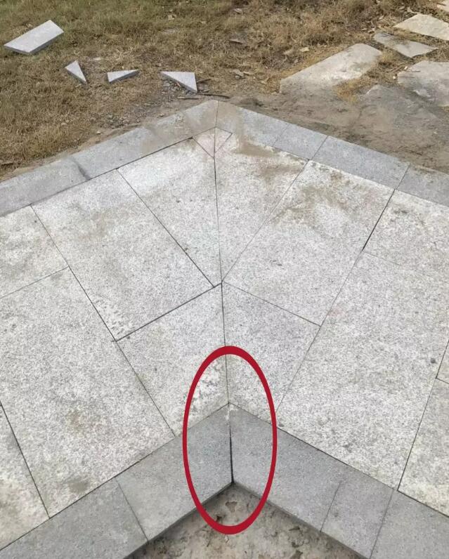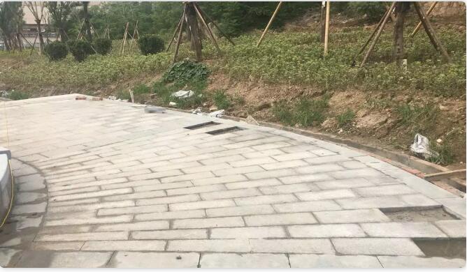 5. 石材鋪裝時應(yīng)大小搭配,縫寬以10mm為宜,用水泥油回縫,縫應(yīng)比石材面低2-3mm。