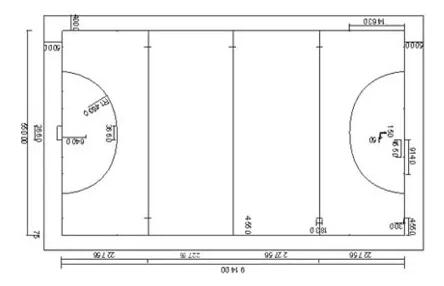 比賽場地邊線和端線外應(yīng)分別空出4.0m和5.0m的緩沖區(qū)域。相鄰比賽場地間還應(yīng)設(shè)4m寬的場外工作區(qū)