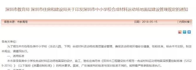 關于印發(fā)深圳市中小學校合成材料運動場地面層建設管理規(guī)定的通知