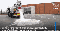 一個(gè)英國(guó)公司發(fā)明了一種可以超強(qiáng)透水吸水的路面......... 1分鐘里在上面灑上4000升水一點(diǎn)問(wèn)題都沒(méi)有,全部滲掉不會(huì)積水........ 他們演示了一下.......