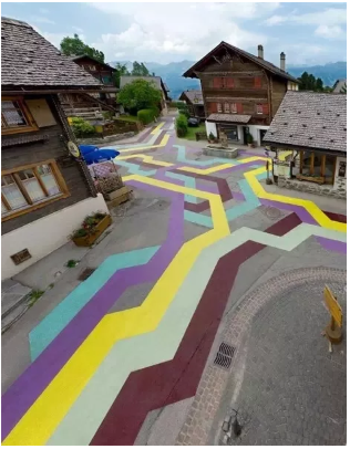 在古色古香的文化保護(hù)區(qū),在不破壞環(huán)境的前提下,彩色線條實(shí)現(xiàn)引導(dǎo)作用,實(shí)為一種智慧討巧的方法。