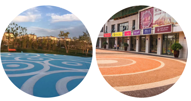 圓形鋪裝圖形完美柔潤,用時(shí)通過不同色彩的圓環(huán)鋪裝,給人以強(qiáng)烈的節(jié)奏感和韻律感。
