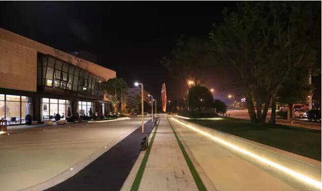 燈光設(shè)計(jì)也是本項(xiàng)目重點(diǎn)設(shè)計(jì)之一。地面的點(diǎn)式地?zé)簟⒒ǔ剡呺[藏的燈帶、高桿庭院燈等燈光的設(shè)計(jì)統(tǒng)一協(xié)調(diào),點(diǎn)、線、面以及光色的搭配,使得遠(yuǎn)處的自然風(fēng)光與燈光景觀相得益彰。