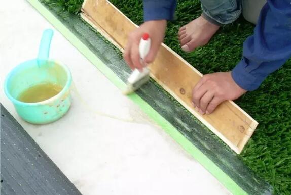 除開膠水質(zhì)量問題(當(dāng)然,我家用的是草坪專用膠水,通過國家環(huán)保檢測標(biāo)準(zhǔn)的,請放心使用),要注意的是涂刷的厚薄度,晾曬的時間。厚薄不均會使草坪凹凸不平;膠水晾曬時間過短,草坪粘不牢,時間過長,草坪粘接后會開膠。這些都是施工師傅的場地施工經(jīng)驗總結(jié)出來的。