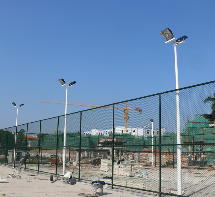 室外籃球場(chǎng)照明一般選用6米7米或8米的錐形鍍鋅管高桿燈,燈具的選擇上以射燈(金鹵燈)或LED燈為主,一個(gè)標(biāo)準(zhǔn)的室外籃球場(chǎng)(28*15m)需配置4-6條錐形燈桿,每根高桿燈裝配2-3盞400w金鹵燈,就可以很好的達(dá)到戶外籃球場(chǎng)夜晚照明的需求。