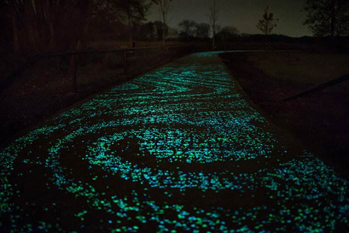 夜光石透水地坪又稱熒光石地坪,是在普通的透水混凝土的基礎(chǔ)上,嵌入人造夜光石,使其擁有夜晚發(fā)光的性能,同時(shí)能夠透氣透水,不僅美觀了環(huán)境,更加符合生態(tài)環(huán)境的發(fā)展。人造夜光石是利用稀土元素激活的堿土鋁酸鹽、硅酸鹽等的高科技研發(fā)的自發(fā)光產(chǎn)品。白天吸收光10-20分鐘即可在晚上持續(xù)發(fā)光12小時(shí)。